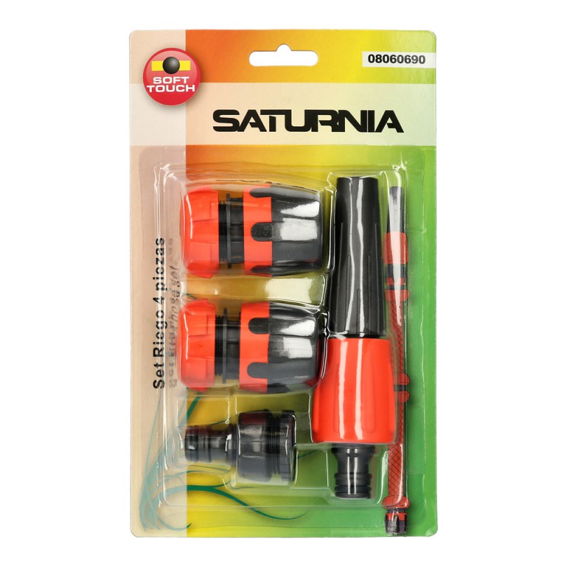- Incluye un lanzarriegos, dos conectores de manguera 1/2" (uno con funcion stop) y un adaptador de grifo.