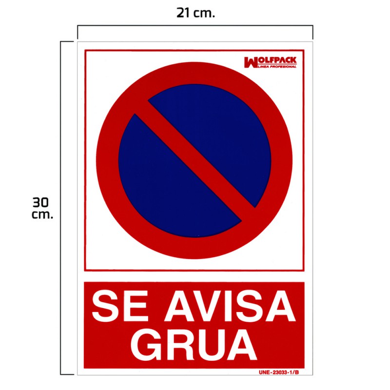 Cartel Se Avisa Grua 21 x 30 (Alt) cm.