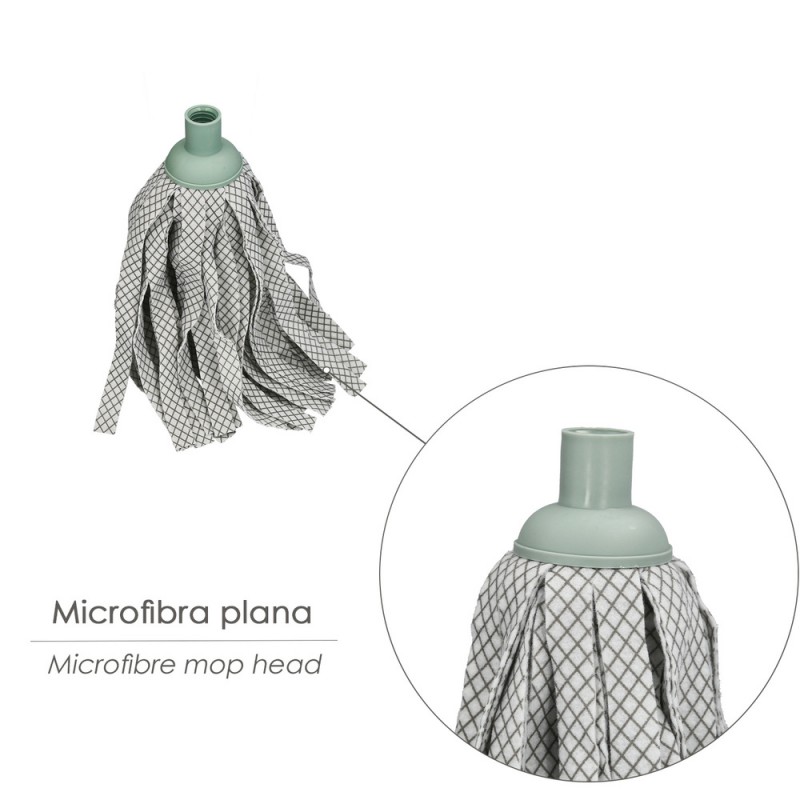 - Fabricado con una mezcla de 60% viscosa y 40% poliéster, este mocho sintético ofrece una excelente capacidad de absorción, drenaje y resistencia, garantizando una limpieza eficiente y duradera.