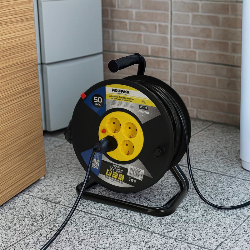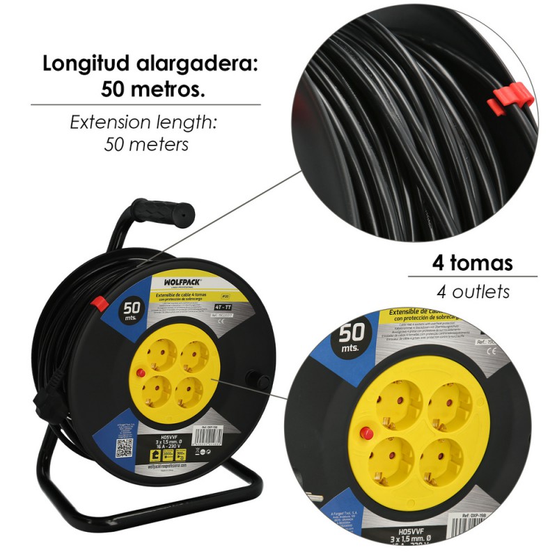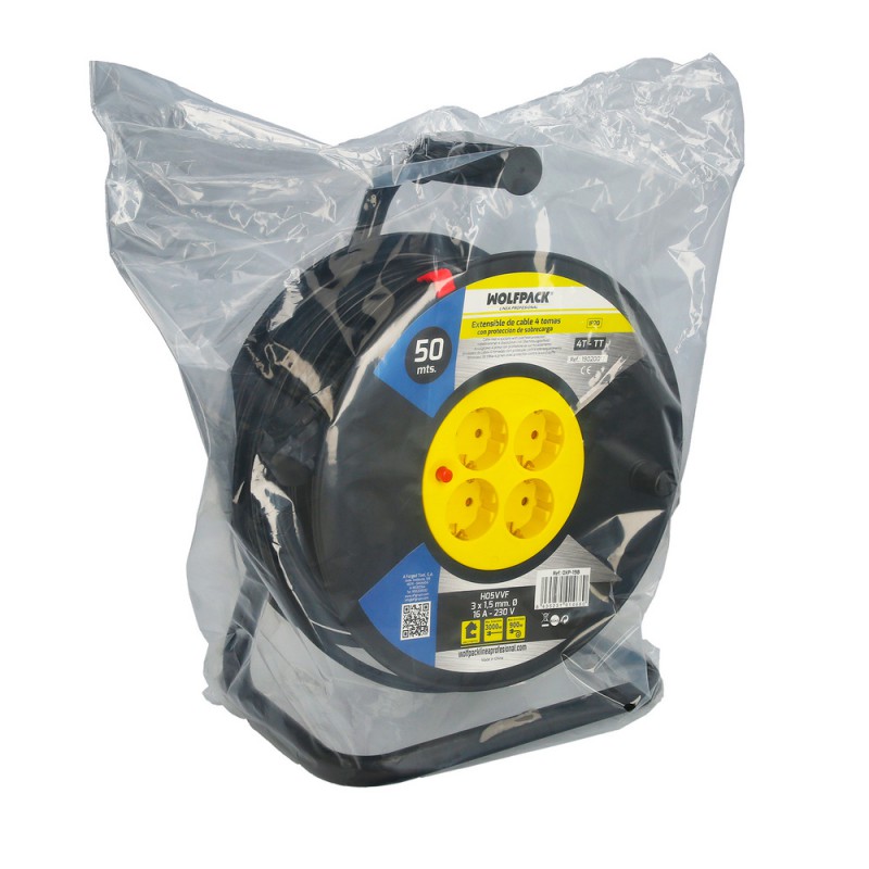 Extensible Industrial 4 Tomas 50 Metros 3 x 1,5 mm. con Protección Sobrecarga