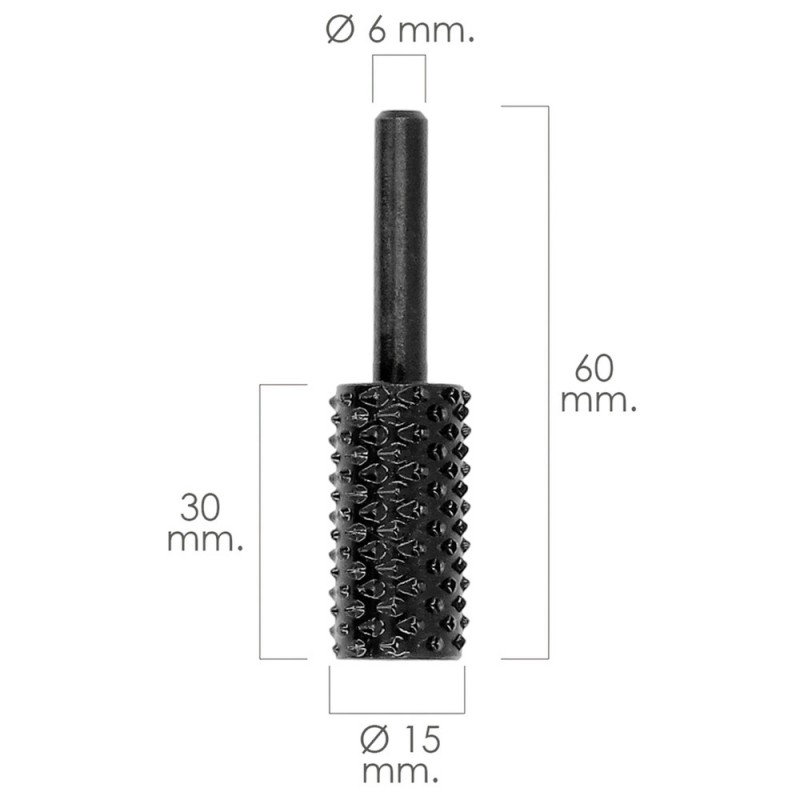 - También conocida como herramienta rotativa cilíndrica para madera, fresa cilíndrica para madera, lima rotativa para madera buril rotativo para madera, punta rotativa para tallado.