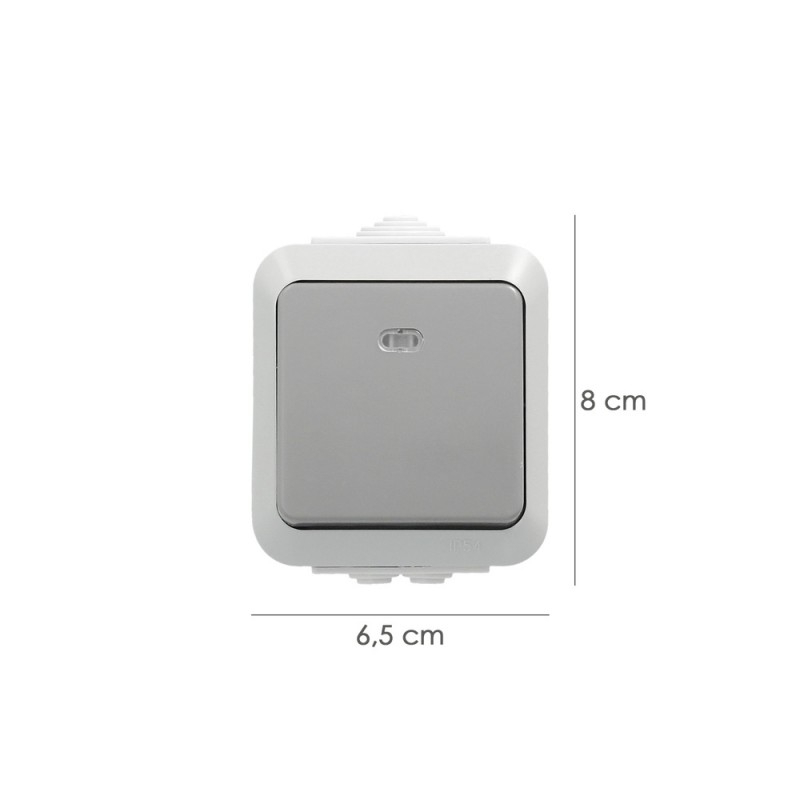 - Este interruptor está diseñado para resistir las adversidades climáticas, ofreciendo protección contra la humedad y el polvo, convirtiéndolo en una opción ideal para espacios exteriores.