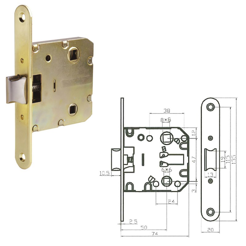 Picaporte Wolfpack 2000- 50 Hierro Latonado Canto Redondo