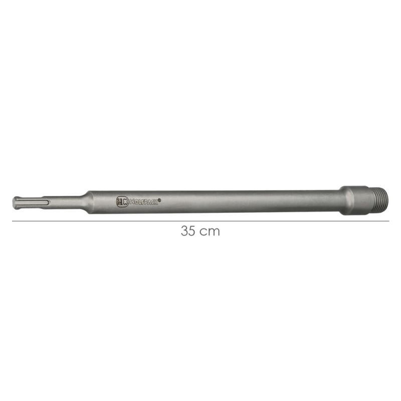 - Esta alargadera tiene una longitud de 350 mm y está diseñada para incrementar la profundidad de perforación en trabajos sobre muros y mampostería.
