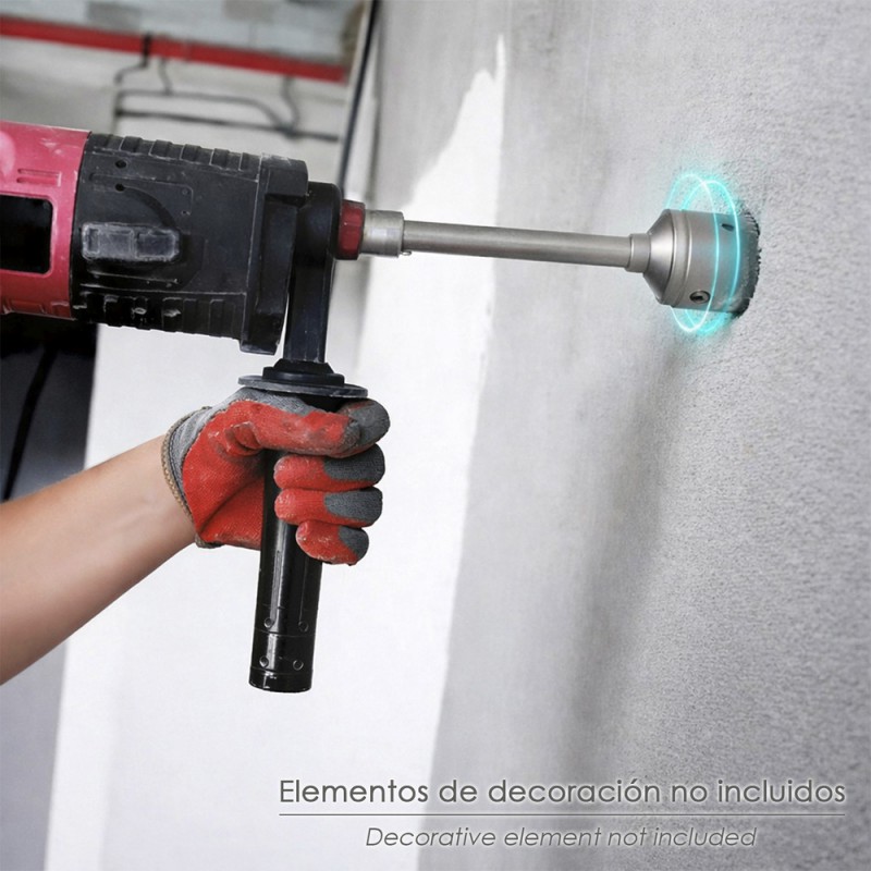 - Es compatible con coronas de hormigón y muros que utilizan portabrocas SDS Plus, incluyendo sistemas desmontables con broca guía.