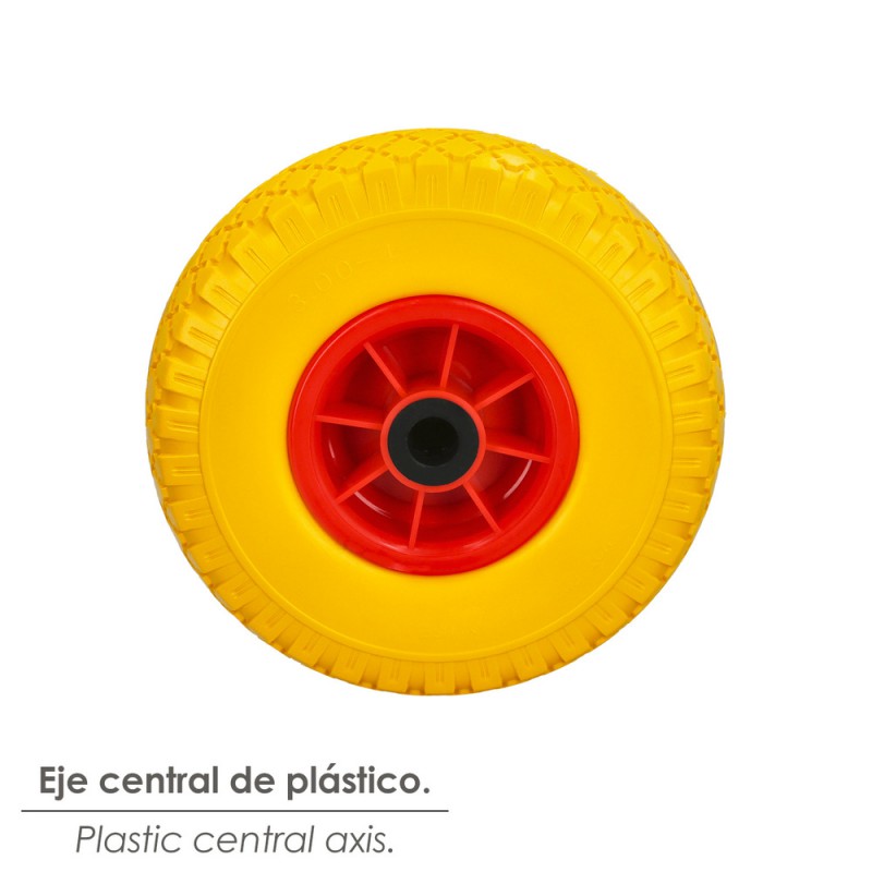 Rueda carretilla sacos maciza llanta plástico 20 Eje Central.