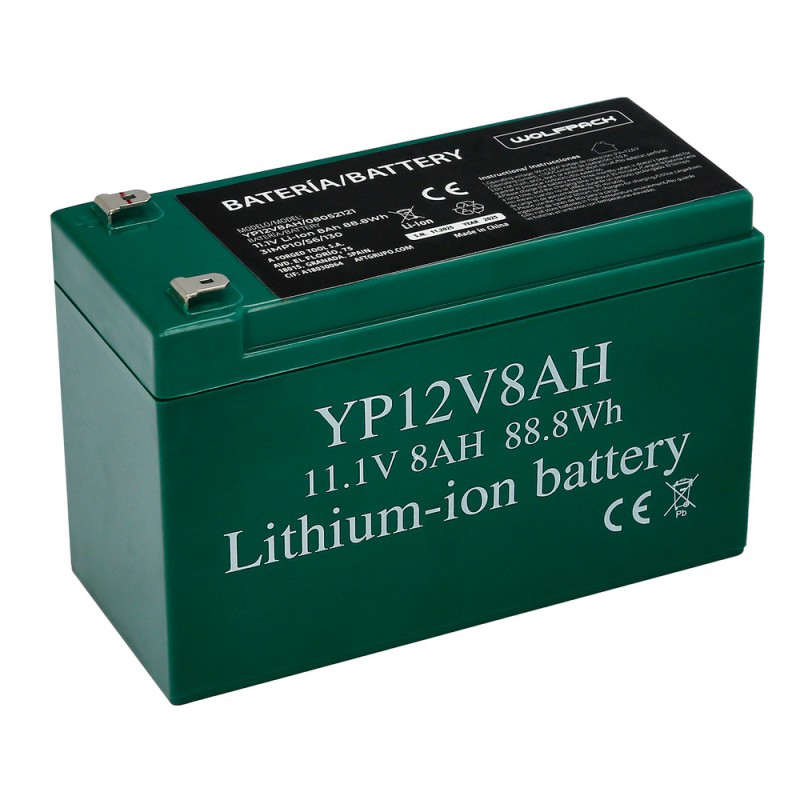 - Batería de litio. Bateria de de 12 V y 8 Ah. Recargable.