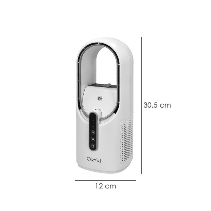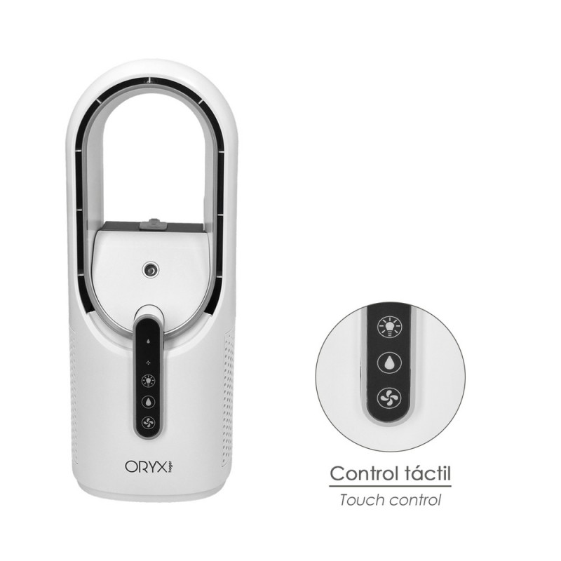 - Además de refrescar el ambiente, este ventilador cuenta con un depósito de 330ml para humidificador, con una capacidad de 29ml/hora, ideal para mantener la humedad adecuada en espacios interiores.