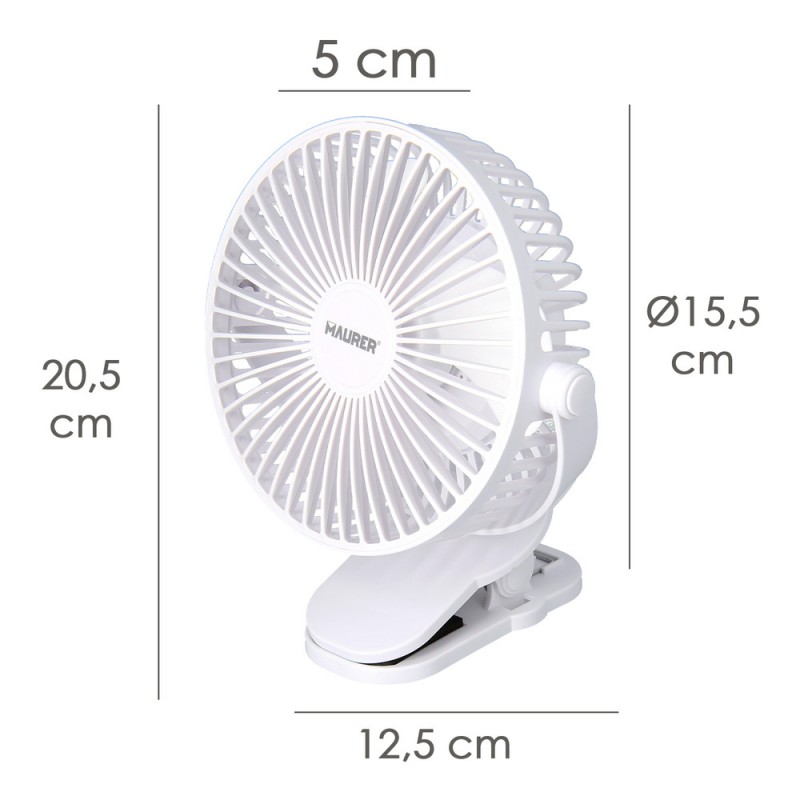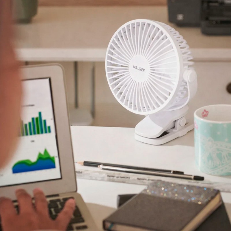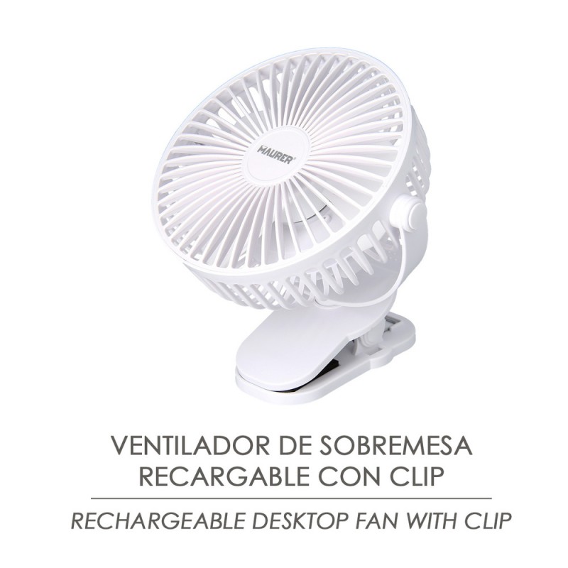 Ventilador Con Clip Sobremesa Ø 15 cm. Recargable